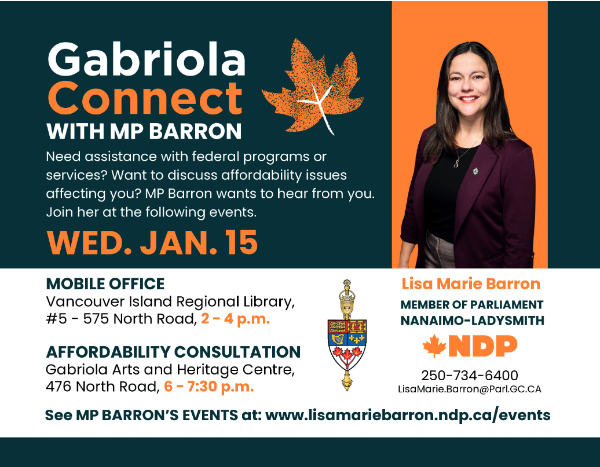 6 - 7:30 pm at Gabriola Arts and Heritage Centre